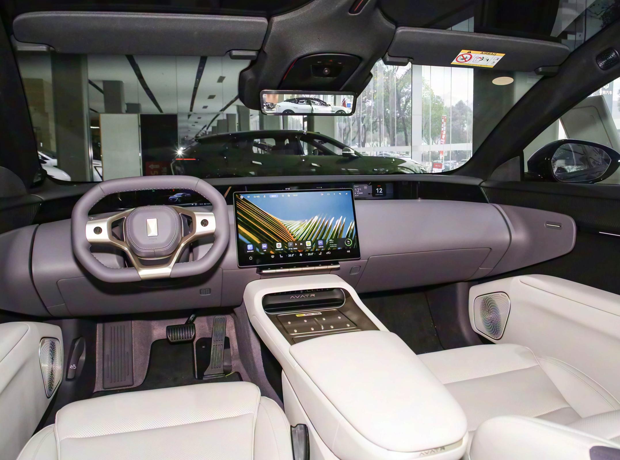 进入车内,全新阿维塔12还原了大量概念车的设计理念,采用360°环拥式座舱与Gentle Tech极简设计语言。环抱式设计中控台配备了35.4英寸全景宽屏、15.6英寸中控屏,两侧还能显示流媒体后视镜功能,中间部分用来显示驾驶相关信息。搭载的华为鸿蒙HarmonyOS 4车机系统和华为高阶智能驾驶解决方案2.0,能够实现高阶智驾辅助功能。车内配备了激光雷达,还搭载了华为乾崑智驾ADS 3.0,支持高速/城区智驾领航、车位到车位领航辅助、泊车代驾等功能。