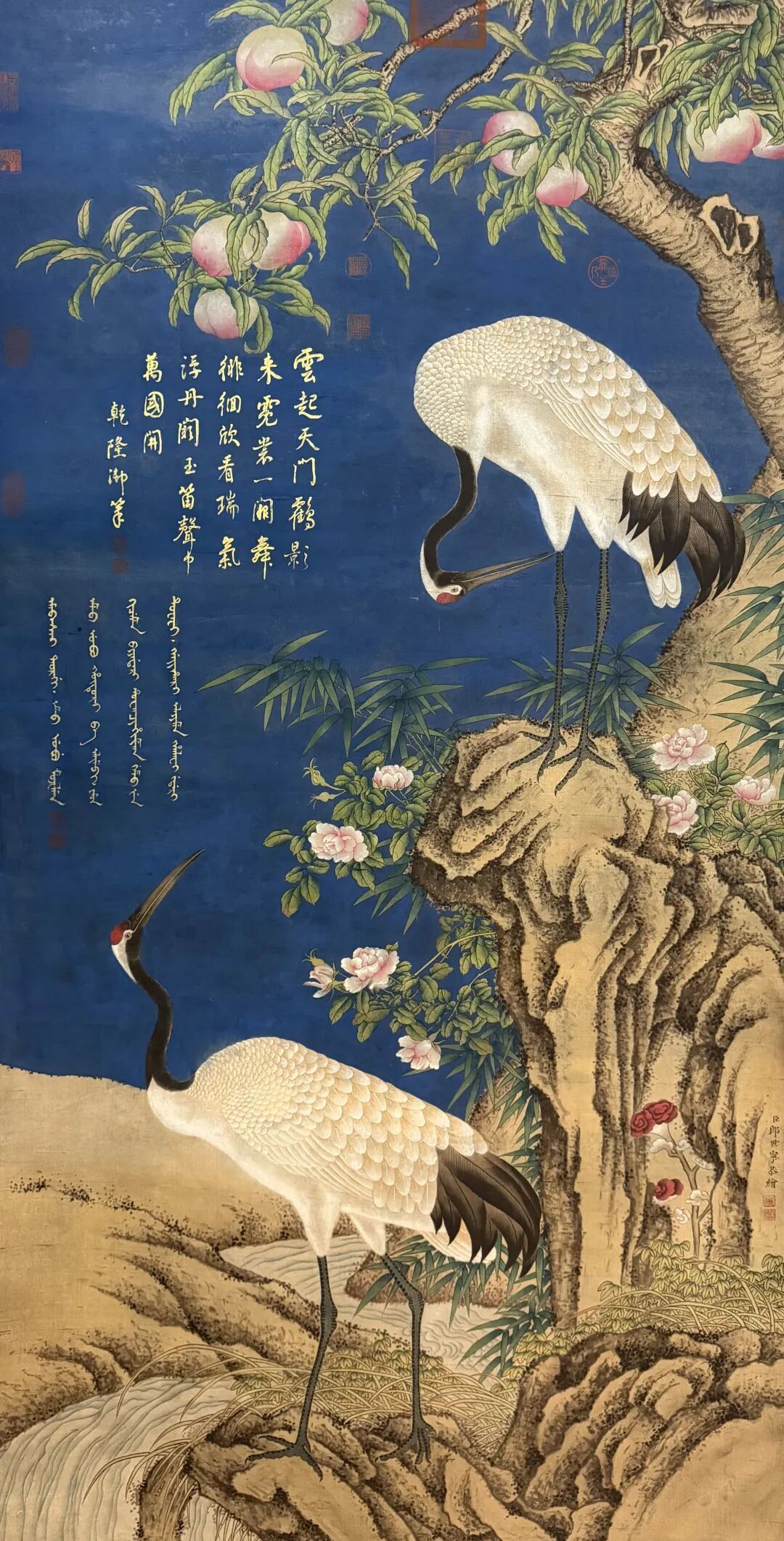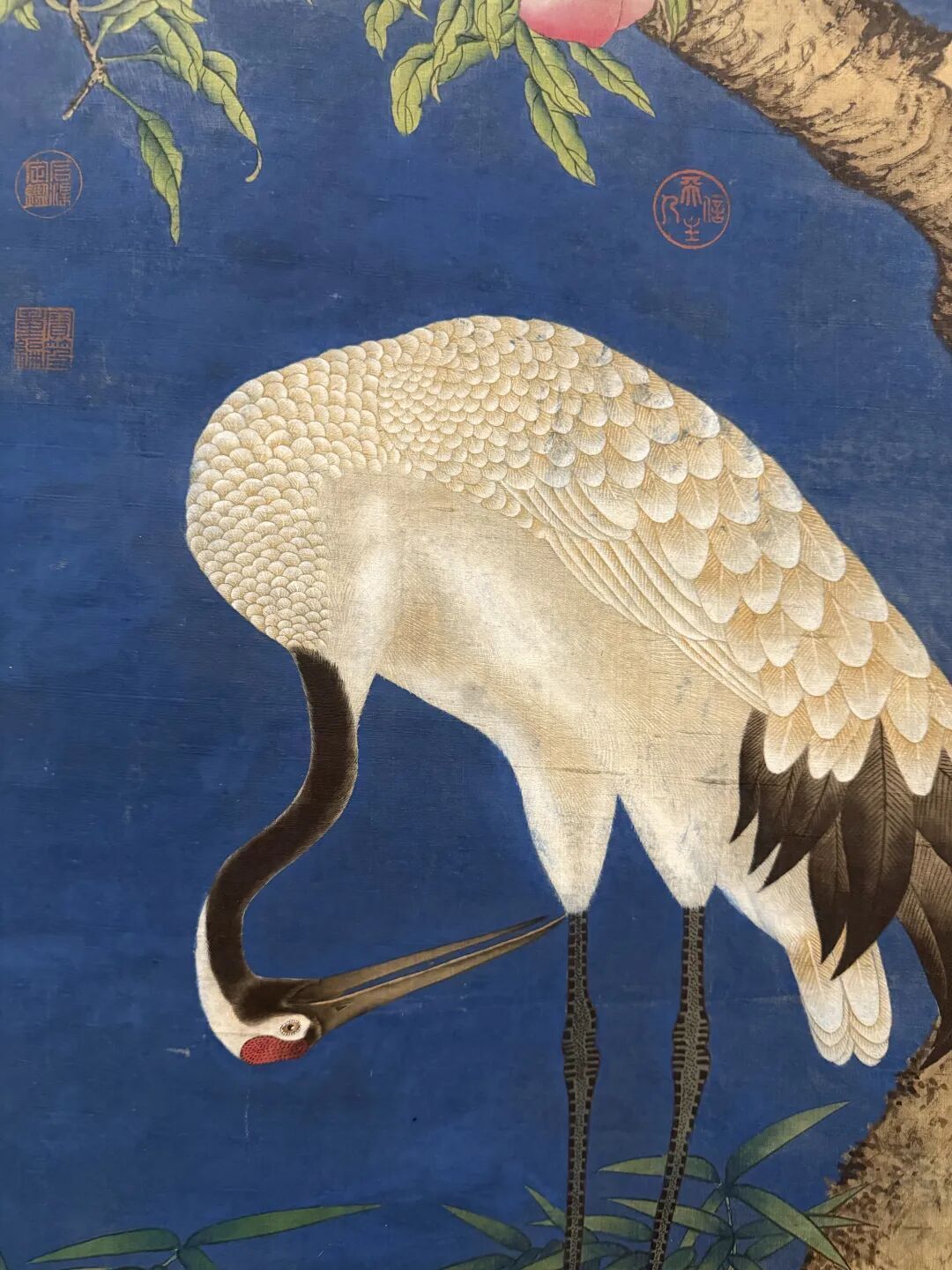 郎世宁这老外,在中国宫廷混了几十年,把西方透视、光影和中国传统笔墨、设色结合得那叫一个妙。这组《瑞鹤图四条屏》,就像是个文化大拼盘,既有西方的“真”,又有东方的“雅”,让人越看越上瘾,不愧是中西合璧的经典之作!